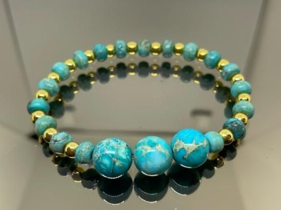 ターコイズ&ゴールド・最強パワーストーン・ブレスレット Mサイズ